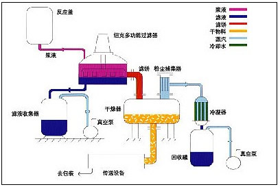 4、操作連續(xù):能夠使過濾和干燥在一個(gè)連續(xù)的系統(tǒng)內(nèi)進(jìn)行,毋須處理濕濾餅。在過濾器下可以連接一個(gè)干燥器,使?jié)駷V餅直接卸入干燥器,干燥后的產(chǎn)品可以機(jī)械傳送至稱量、包裝等工段。